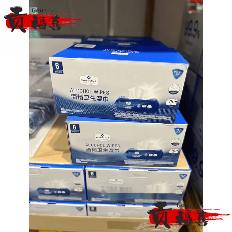 通用Member's Mark 75%酒精卫生湿巾6包*80片 杀灭99.9%细菌 3包拆箱發货