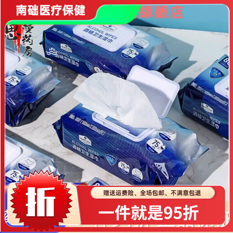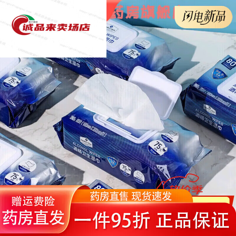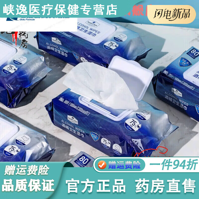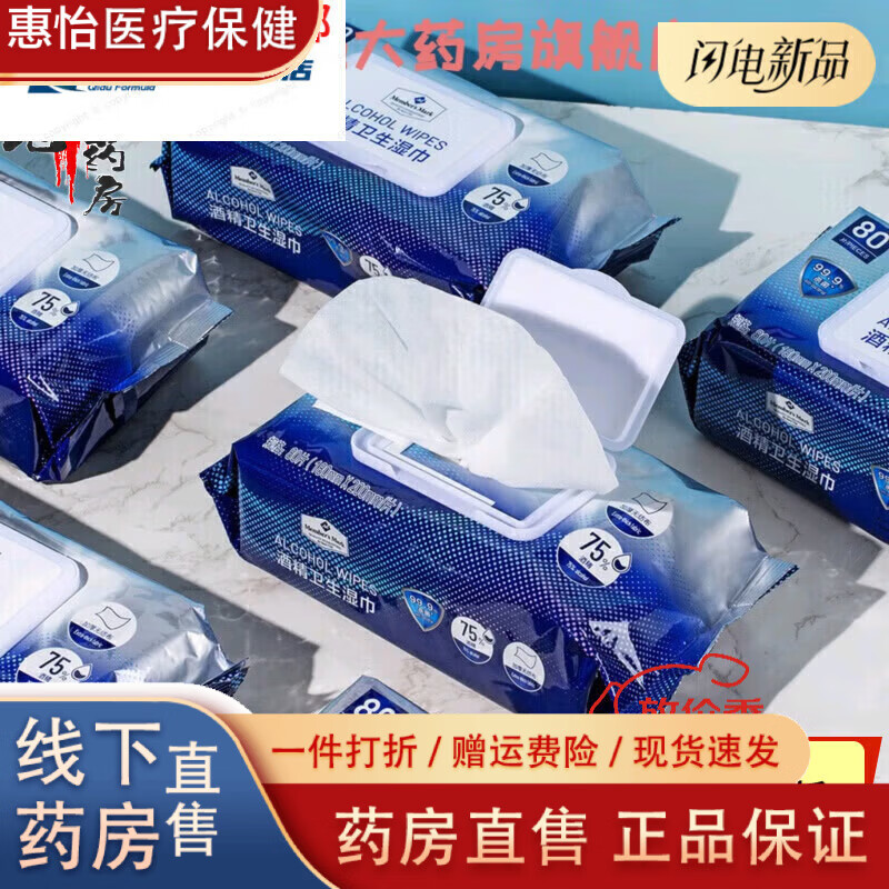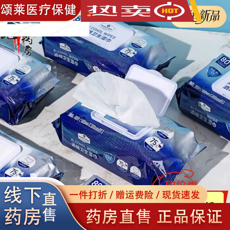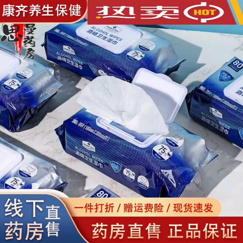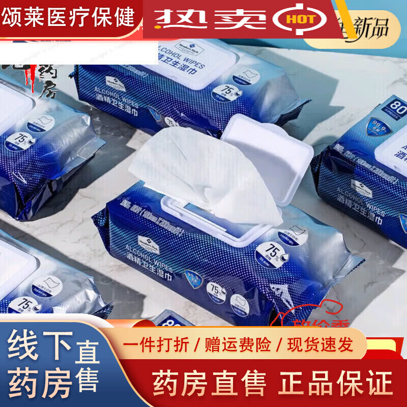 通用 Mark酒精卫生湿巾80片*1包加厚水刺无纺布约75%酒精擦手 6包 6*80抽【整箱】