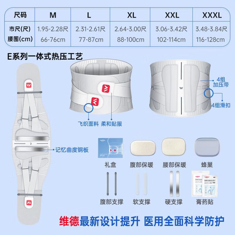 维德医用护腰带腰间盘劳损突出腰椎治疗器腰围拖肌疼束腰发热 M码80-100斤 轻薄透气一体式工艺4D飞织面料3功能垫片