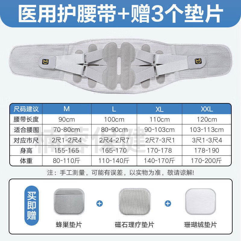 通用医用护腰带腰肌腰间盘腰围腰托护腰部久坐久站劳损男女士用突出 (升级款)加宽设计+4根钢板支撑+3种暖腰垫片 S/适合体重50~80斤【男女都可穿】