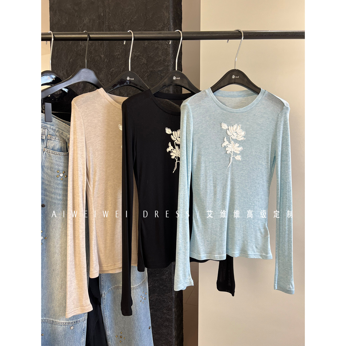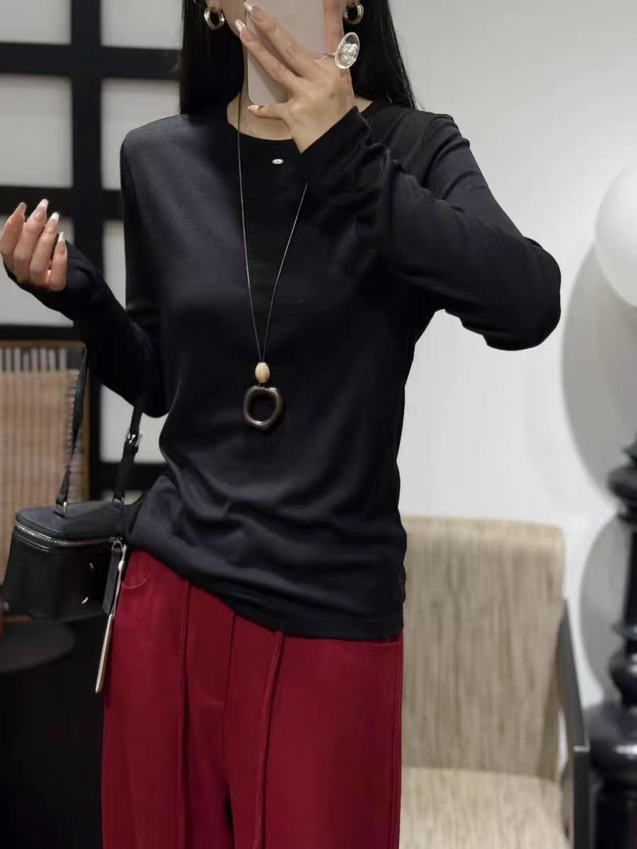 闰熙R家3891-3黑色打底衫女2024春夏内搭小衫薄款上衣面膜长袖t恤
