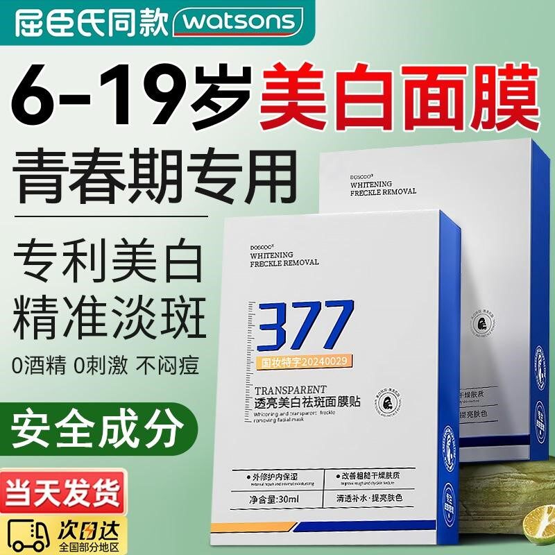 儿童面膜美白青春期女孩12岁补水提亮肤色去黄气暗沉青少年专用