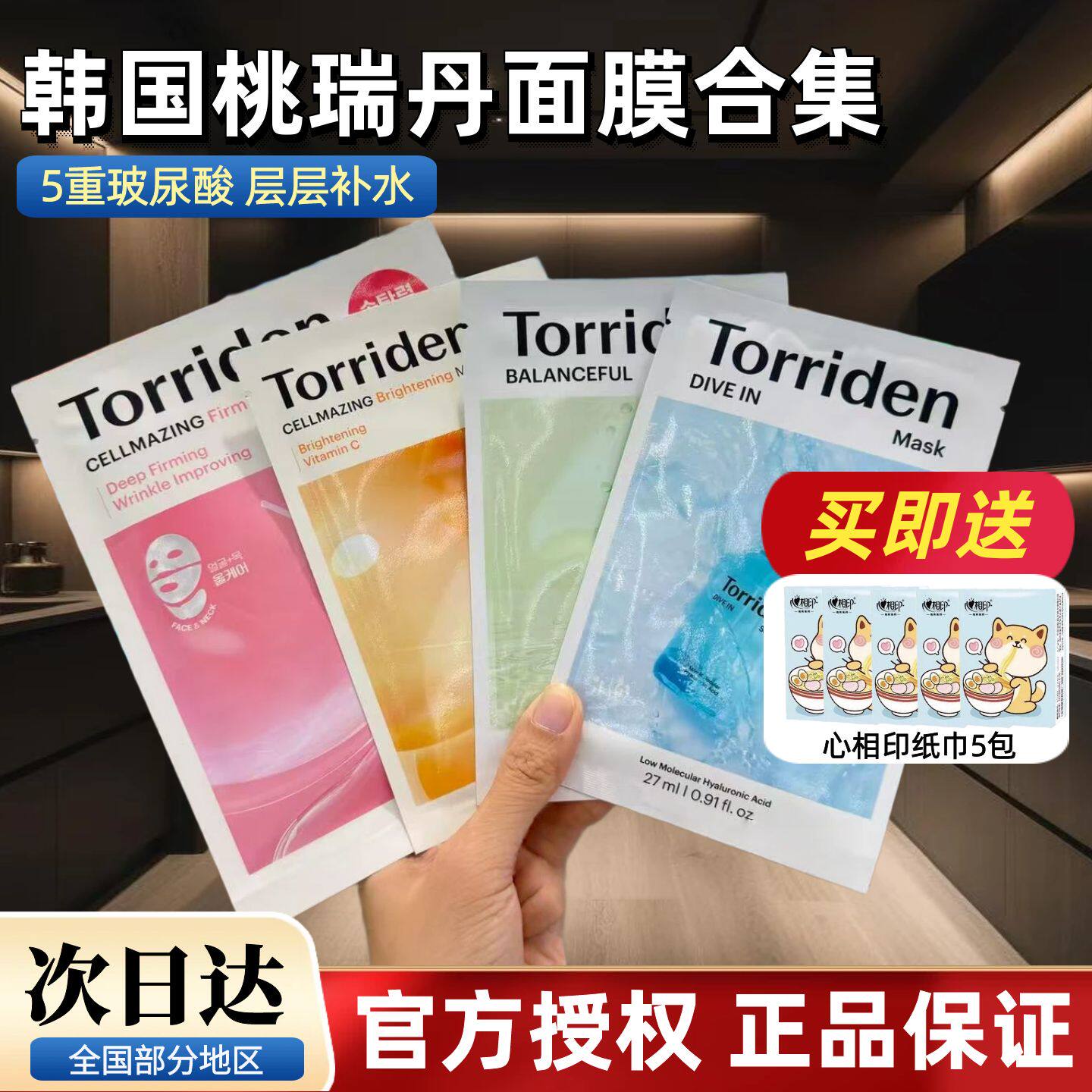 韩国torriden桃瑞丹面膜oliveyoung玻尿酸积雪草胶原蛋白补水面膜