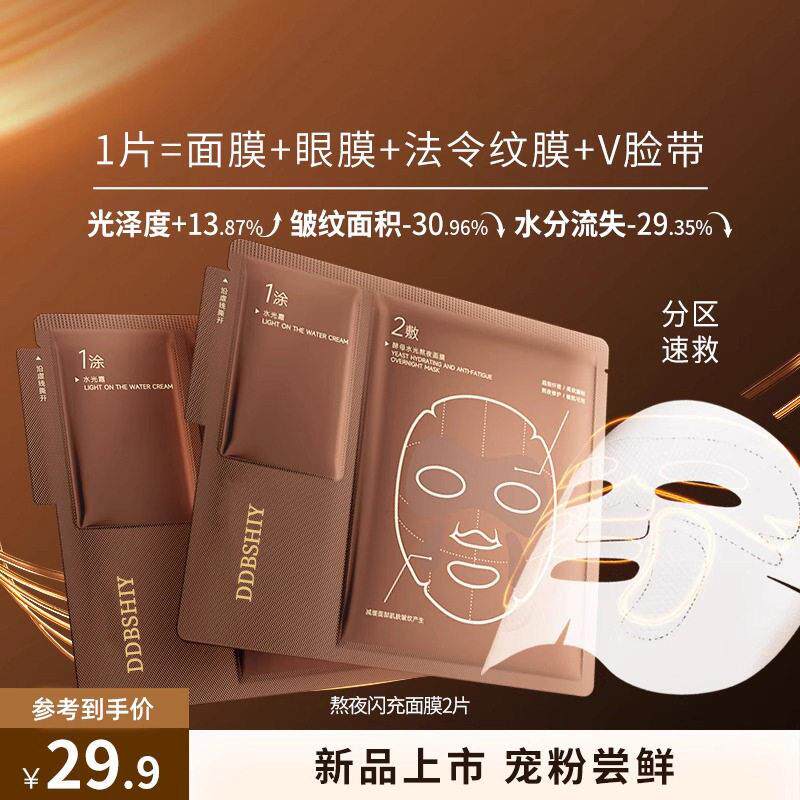 抖音同款酵母水光面膜熬夜急救保湿补水抗皱提拉紧致修护贴片面膜