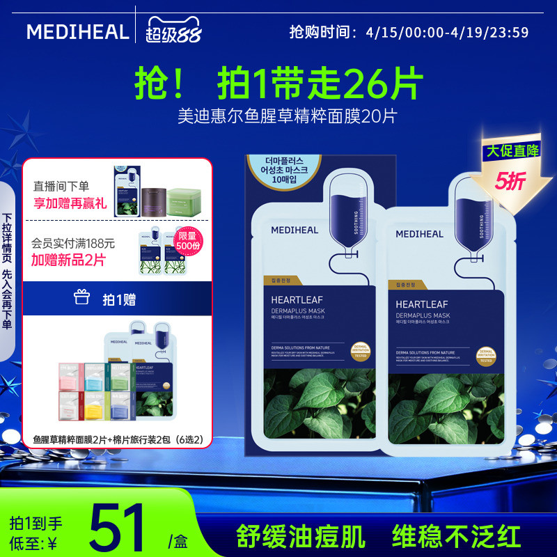 【爆款精粹】美迪惠尔旗舰店鱼腥草精粹面膜20片舒缓深度保湿面膜
