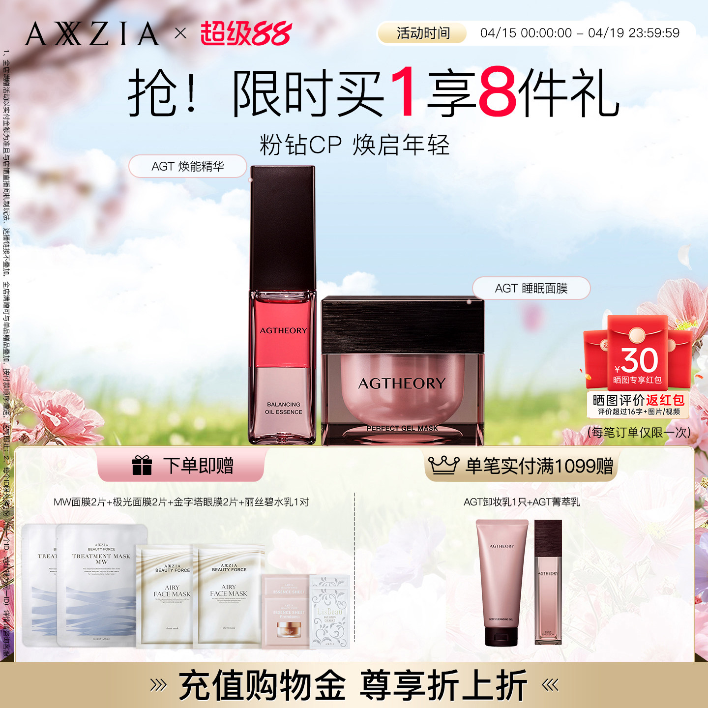 【晓姿粉钻CP】AGT涂抹睡眠面膜+AGT焕能精华水油同补透亮紧致