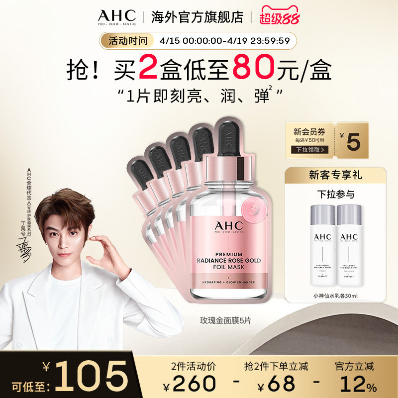 AHC玫瑰金箔提亮面膜5片热敷补水锁水焕亮弹润男女官方旗舰店正品