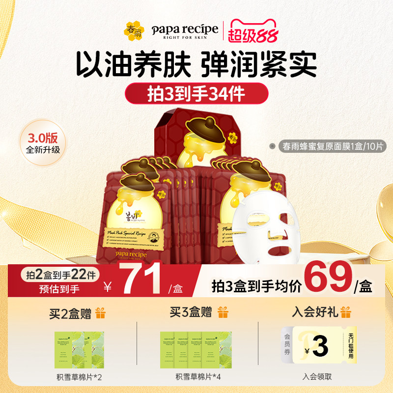 韩国原装红春雨蜂蜜复原面膜3.0滋养提拉10片淡纹补水紧致旗舰店