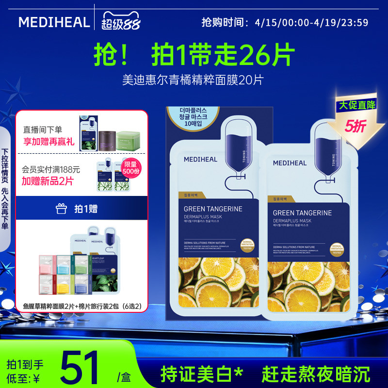 【美白焕亮】美迪惠尔官方旗舰店青橘精粹20片美白保湿面膜男女