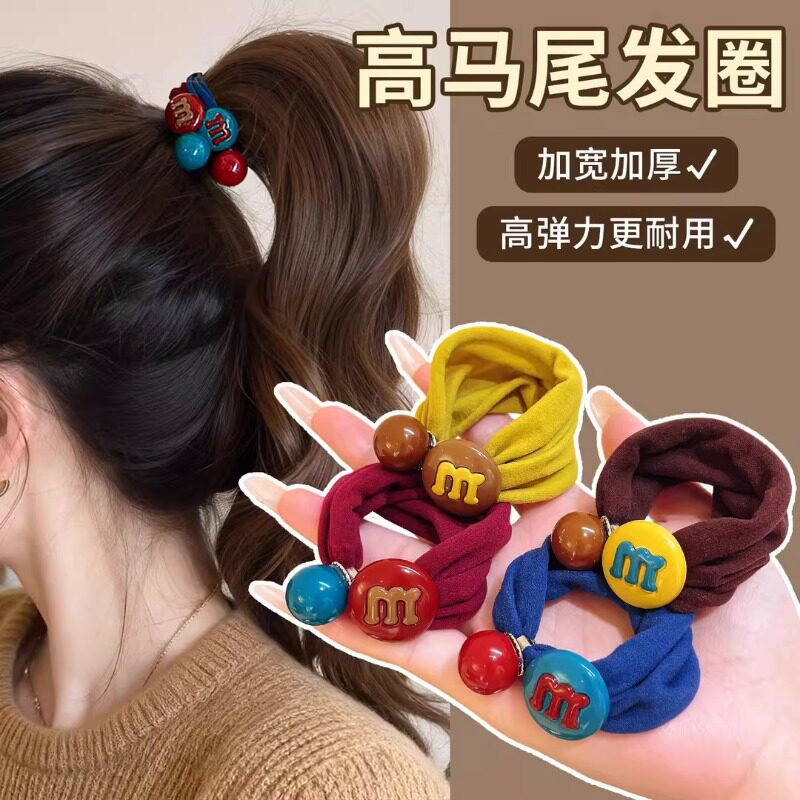 M豆面膜发圈女高弹力加宽加厚扎头发绳高马尾头绳发饰橡皮筋头饰