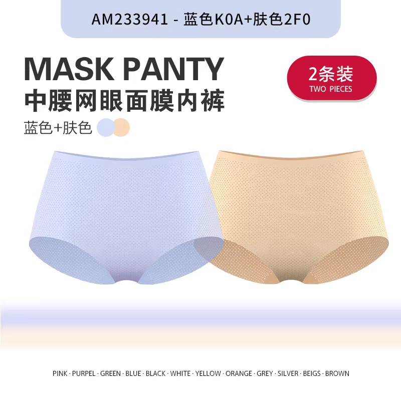 【2条组/3条组】爱慕面膜内裤女轻薄网眼抗菌中腰平角裤AM233941