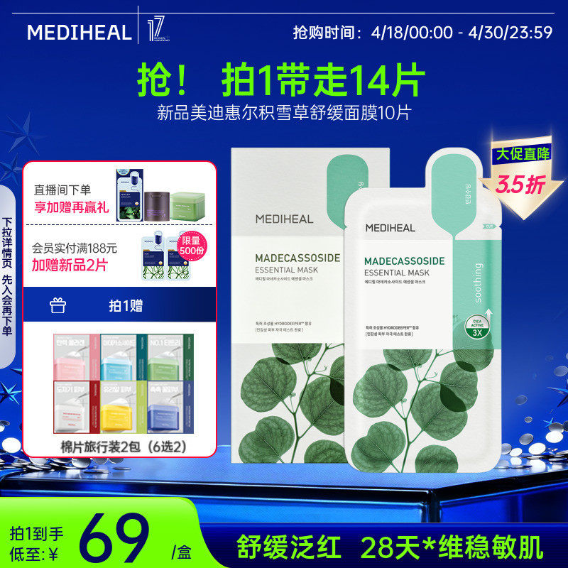 美迪惠尔官方旗舰店积雪草精研舒缓美白面膜