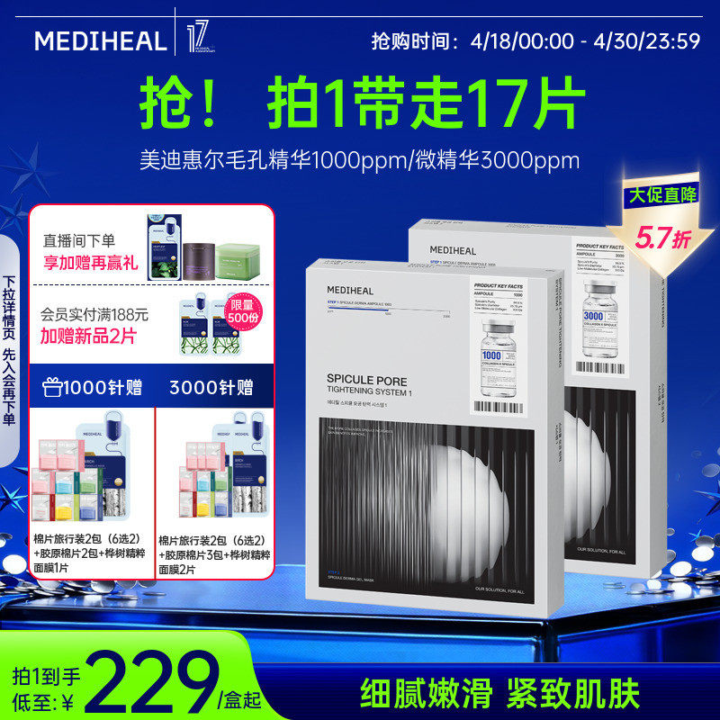 【细腻毛孔】美迪惠尔韩国微精华面膜3000ppm10片紧致抗皱