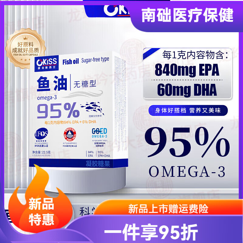 效立安OKISS omega-3深海鱼油成人95%纯度900mgEPA+DHA心脑血管 4盒装(3