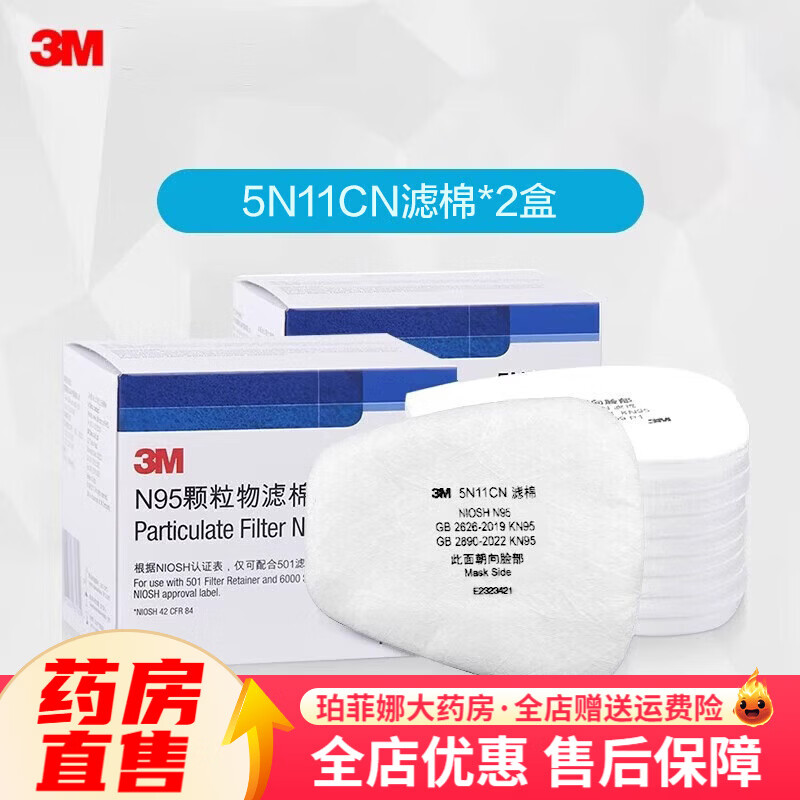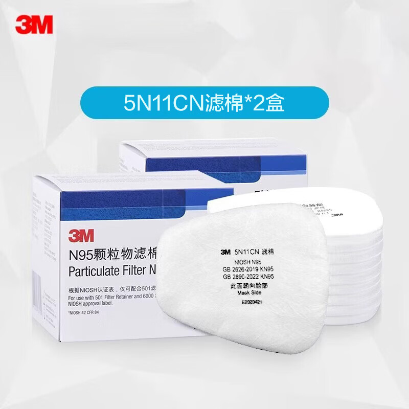 3M防尘滤棉5N11颗粒物KN95防毒面具过滤棉面罩配件10片盒装PSD 5N11CN滤棉【整盒带防伪】*2盒