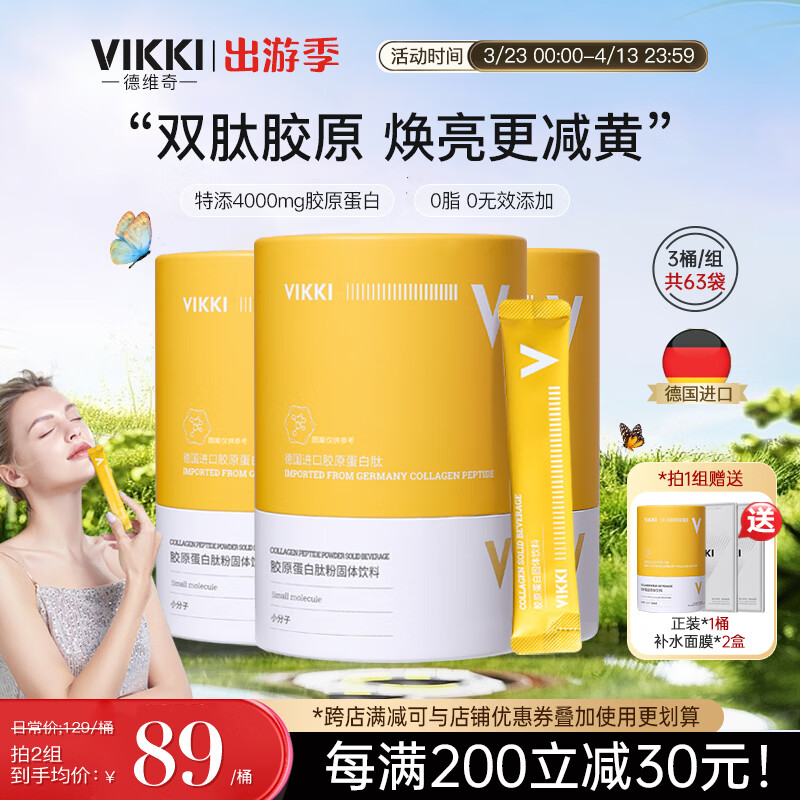 vikki德维奇德国原料进口胶原蛋白粉肽深海鳕鱼美容养颜皮肤抗衰老氧化 买3送1【店长推荐-均价95元/桶】 4g*84袋