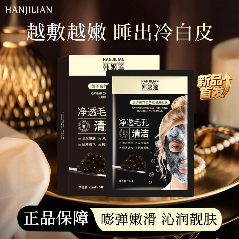 鱼子酱竹炭净澈泡泡面膜轻薄透气温和保湿清爽净肤嫩滑补水5片装