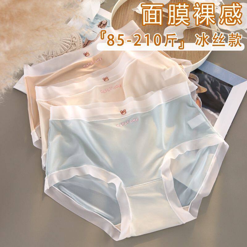 夏季新款胖mm大码冰丝内裤女纯棉抗菌中腰无痕薄款面膜超薄款速干