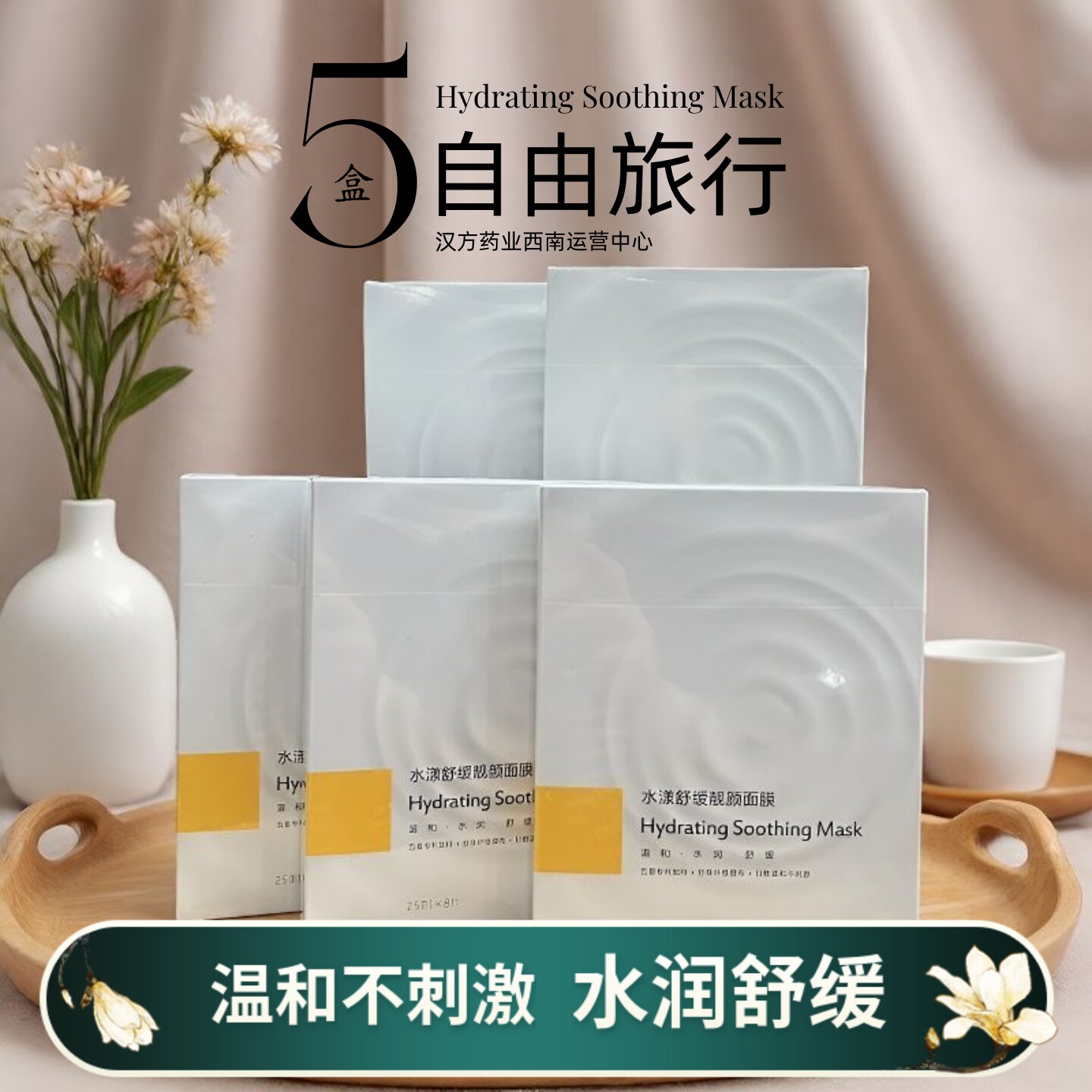 【自由旅行】汉苑良方水漾舒缓靓颜面膜富含植萃长效保湿8片*5盒