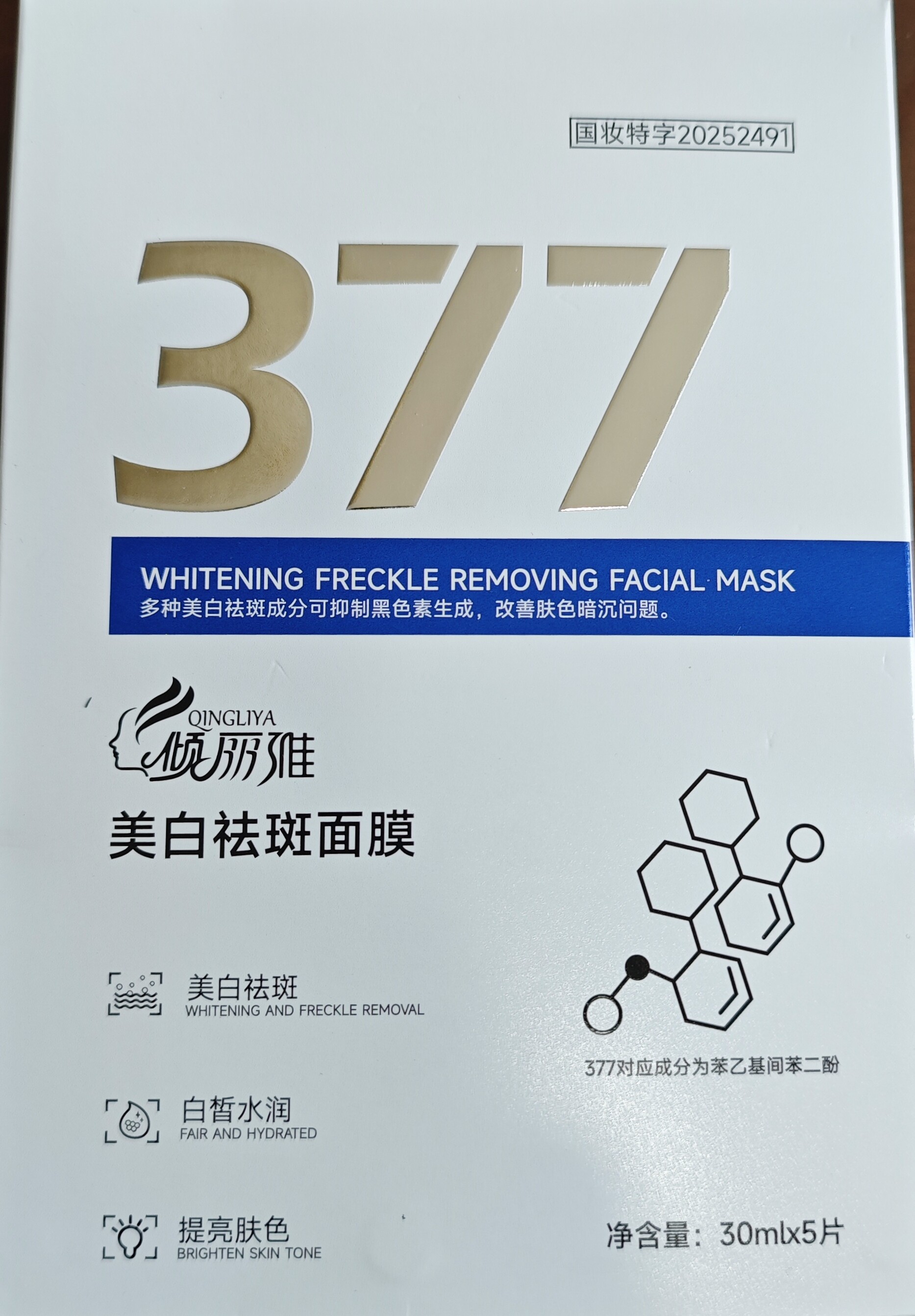 倾丽雅377美白祛斑面膜30mlX5片保湿提亮肤色嫩白祛斑男女通用