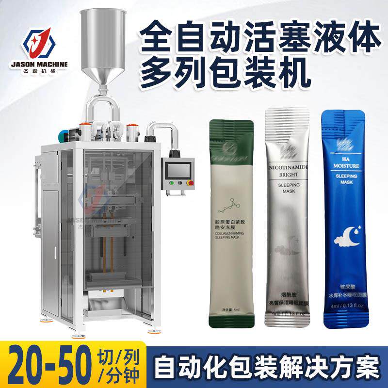 活塞泵液体多列包装机背封圆角条袋面膜精华霜乳液护肤品包装机