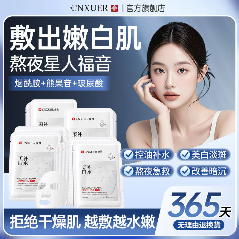 康雪美白面膜补水保湿烟酰胺美白淡斑淡黄提亮肤色改善粗糙面膜贴