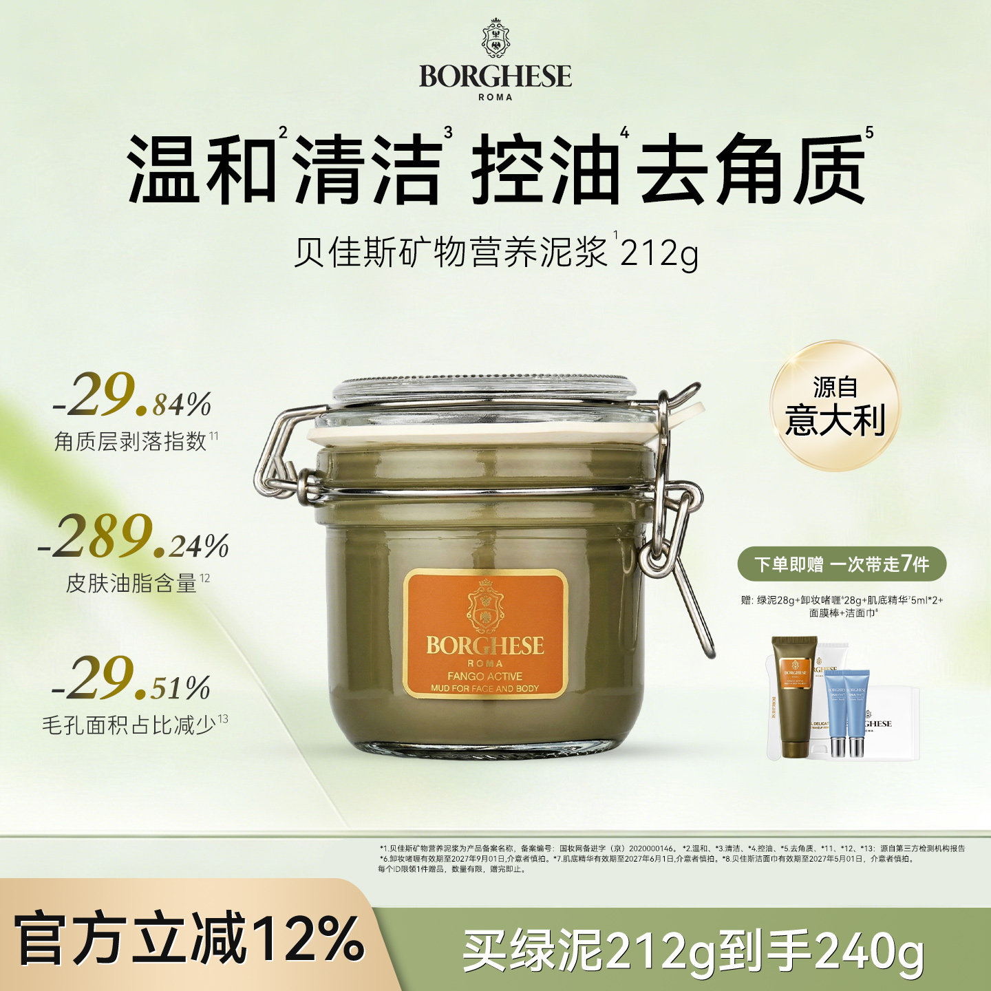 Borghese/贝佳斯绿泥浆温和清洁毛孔涂抹式泥膜洁面保湿面膜212g