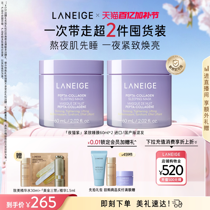 兰芝夜猫紫睡眠面膜紧致抗皱保湿修护舒缓免洗