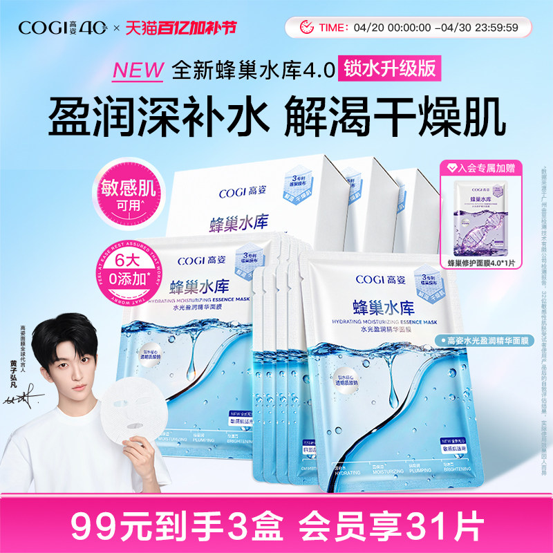 【黄子弘凡同款】高姿蜂巢水库面膜玻尿酸补水保湿贴片面膜护肤品
