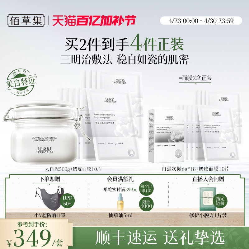 佰草集新七白三明治敷法美白祛斑大白泥特证精华奶皮面膜官方正品