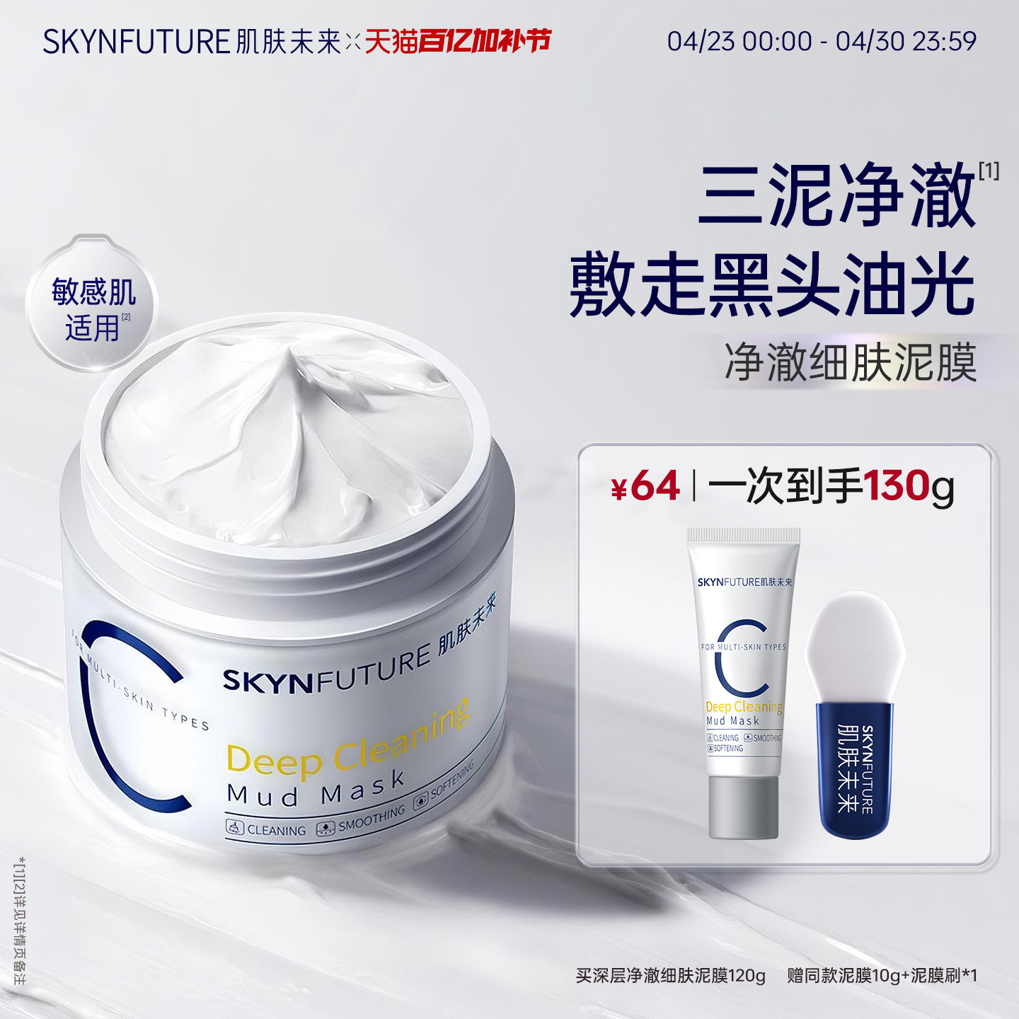 肌肤未来清洁泥膜油皮去黑头深层清洁面部涂抹面膜男女