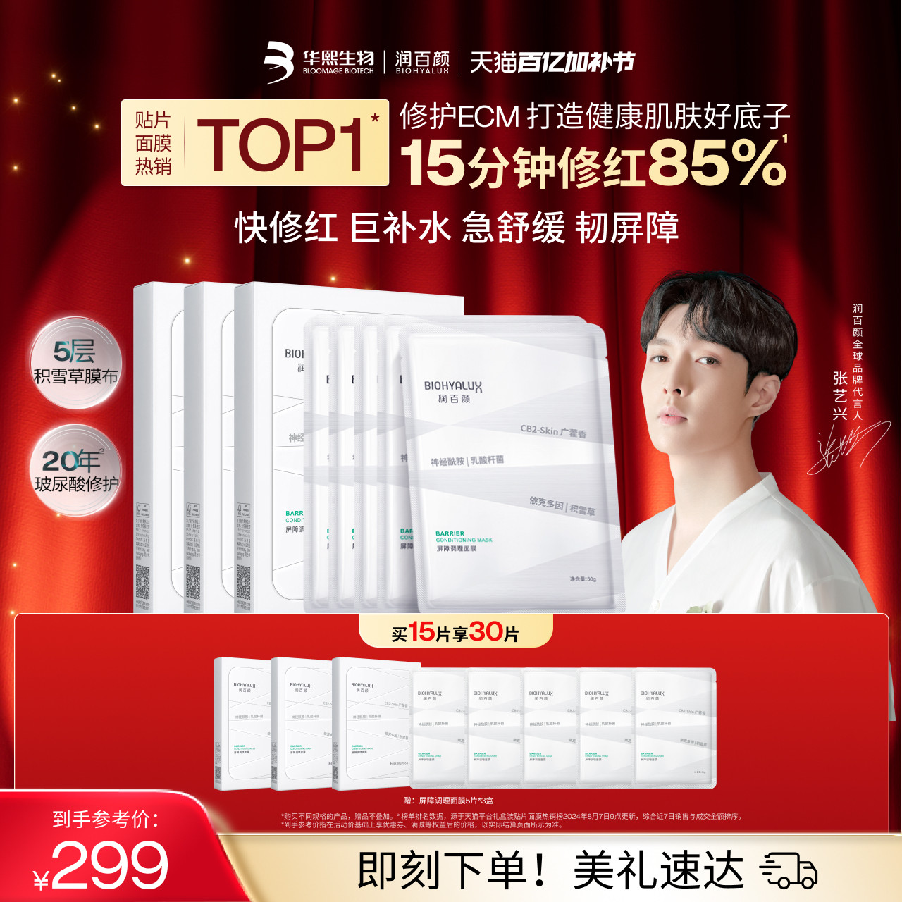 润百颜白纱布面膜2.0屏障调理敏感肌修护补水舒缓华熙生物