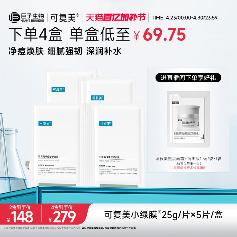 可复美净痘小绿膜修护皮肤屏障保湿控油润肤净痘强韧面膜5片/盒