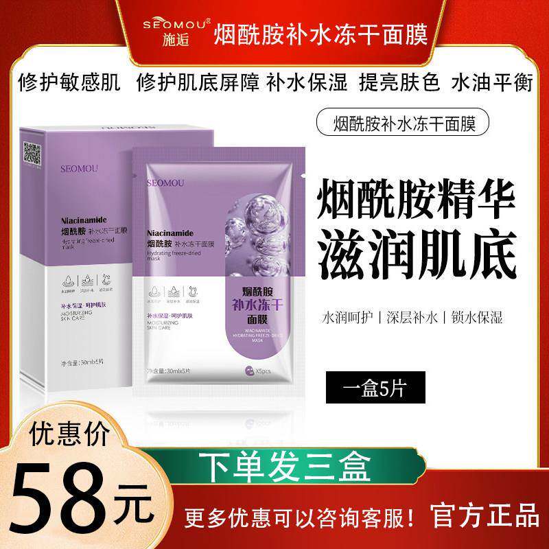 烟酰胺保湿冻干 干面 面膜保湿蚕天丝保湿化妆水润嫩肤亮肤修护敏