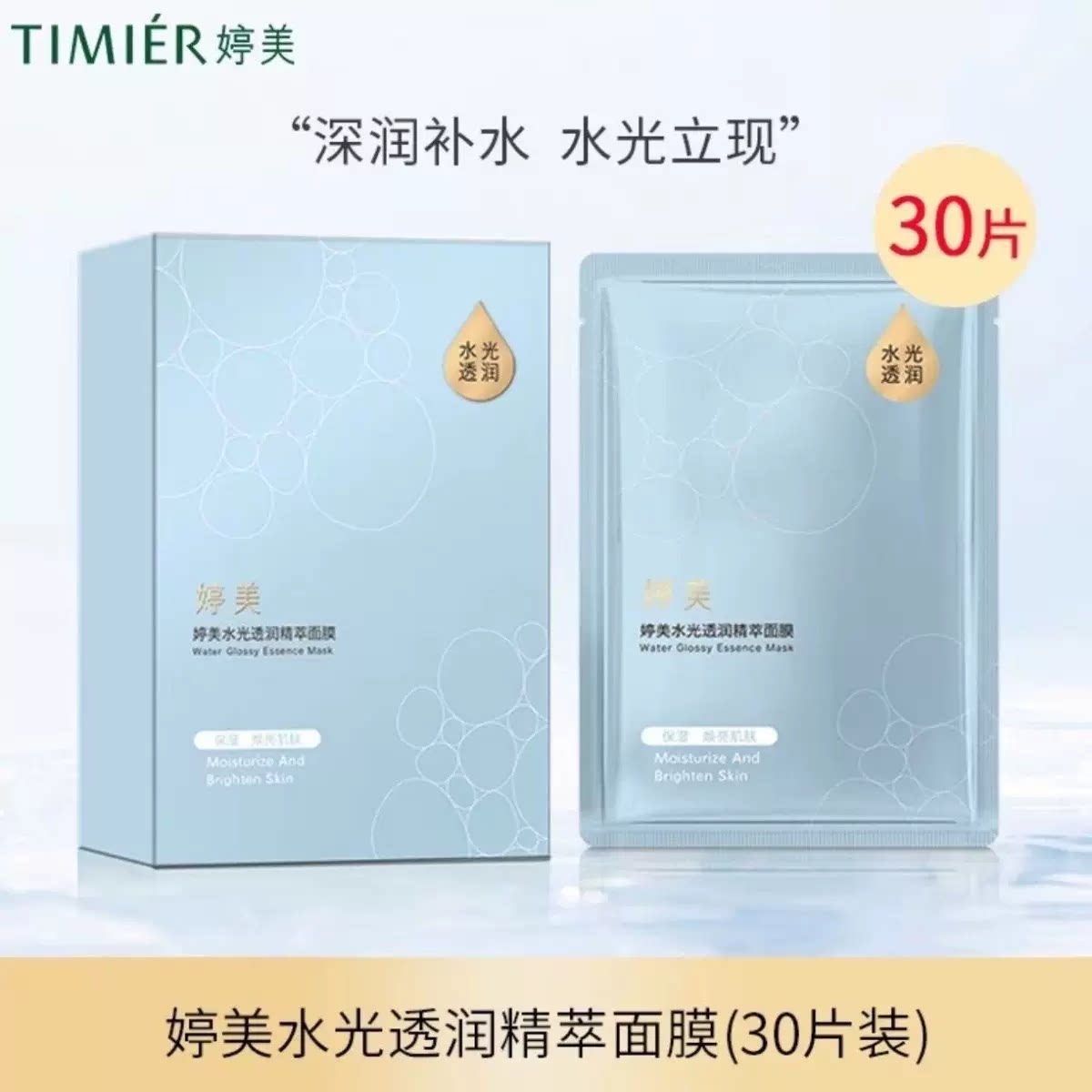婷美水光透润精萃面膜贴玻尿酸抗皱紧致淡纹保湿精华补水敏感肌女