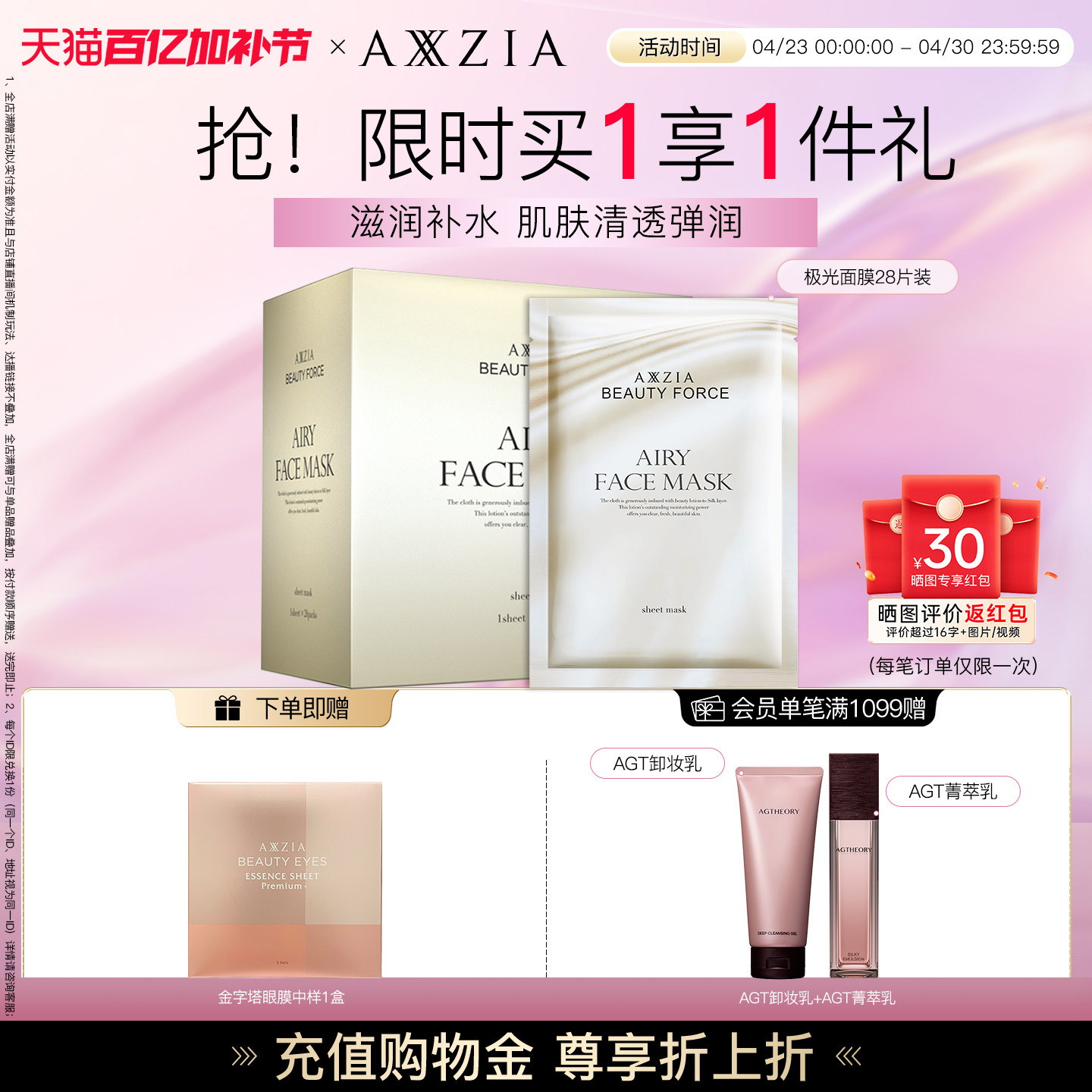 AXXZIA晓姿气感极光面膜补水保湿嘭弹提亮淡化细纹干纹滋养贴片