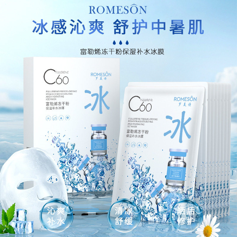 罗美诗富勒烯冻干粉冰膜面膜贴片式补水保湿晒后修护舒缓熬夜急救