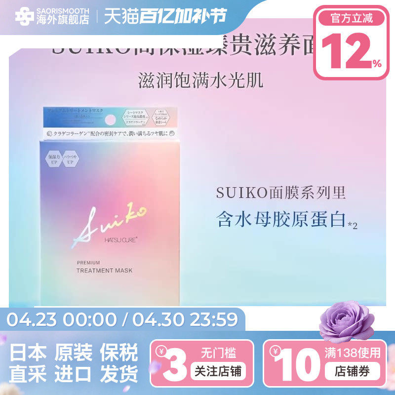 SUIKO高保湿臻贵滋养面膜3片日本胶原蛋白水母精华滋养面膜