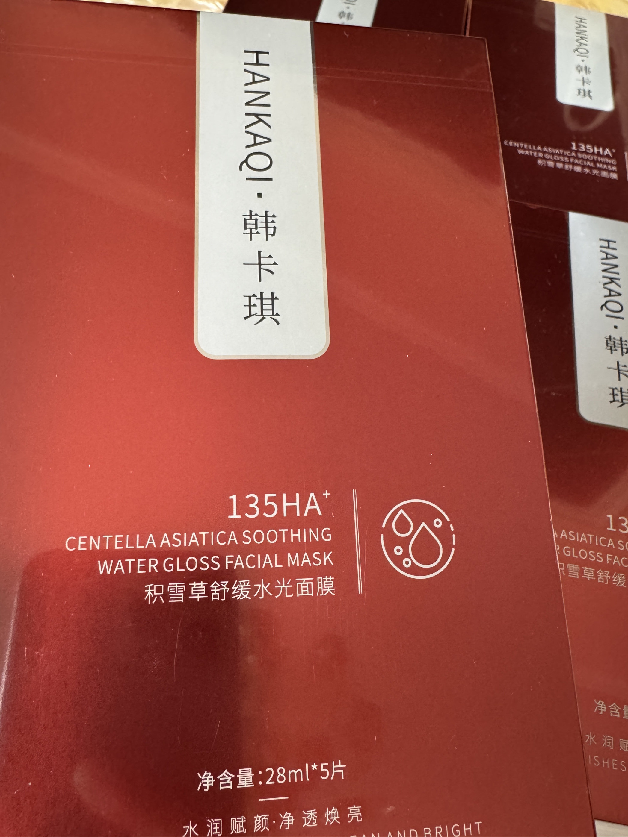 HANKAQI积雪草舒缓水光面膜 修护补水提亮肤色细致毛孔晒后修复颜
