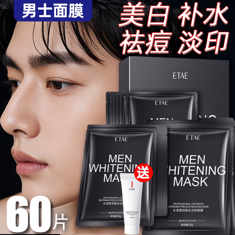 60片面膜男士专用美白控油抗痘淡印正品补水增白抗皱纹衰黑头老