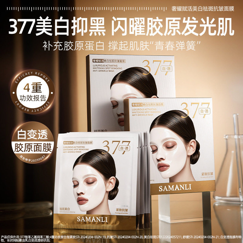 莎曼莉377美白祛斑抗皱面膜5片舒缓保湿胶原蛋白变透面膜水光贴片