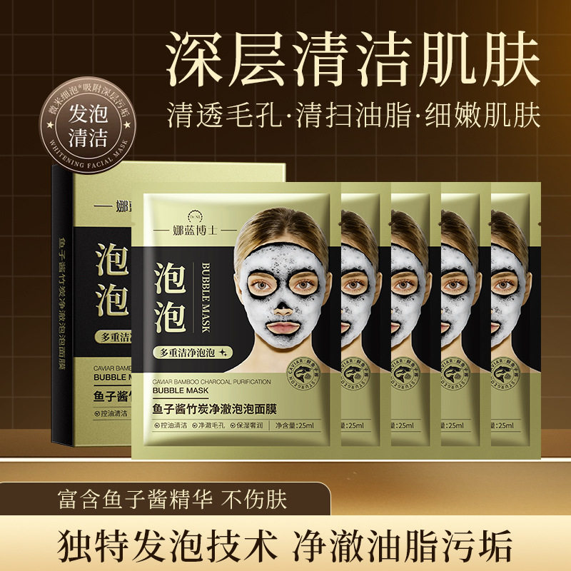 娜蓝博士鱼子酱竹炭净澈泡泡面膜细腻发泡清洁黑头闭口黑膜布面膜