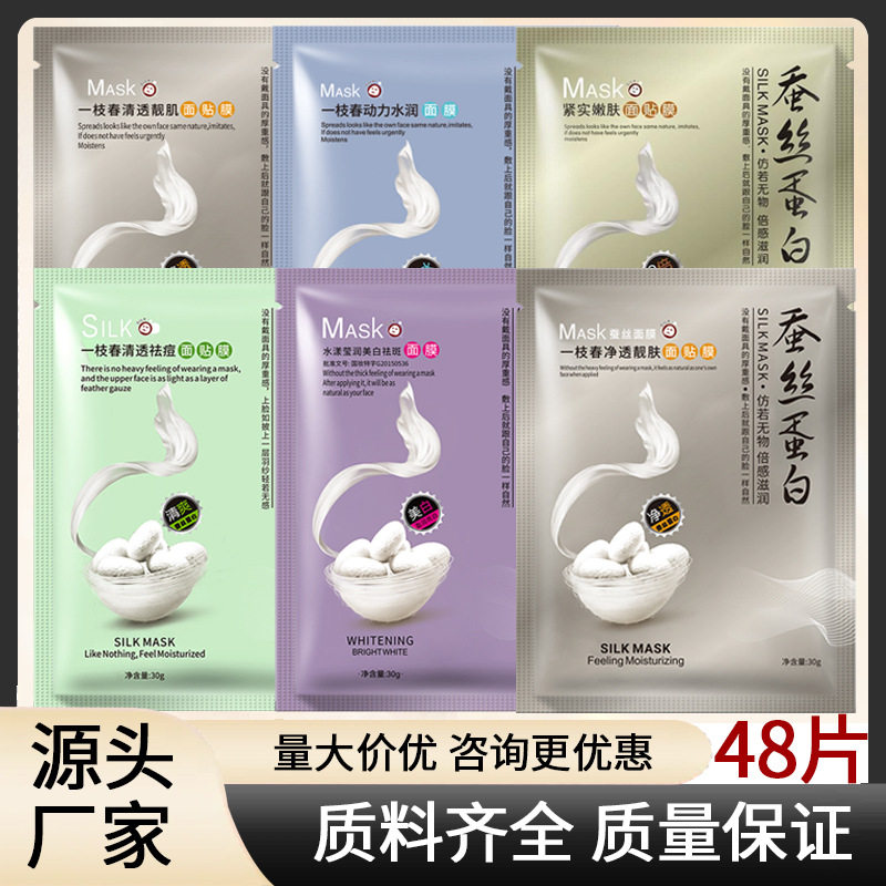 一枝春蚕丝面膜蚕丝蛋白面膜补水保湿 面膜 48片组合
