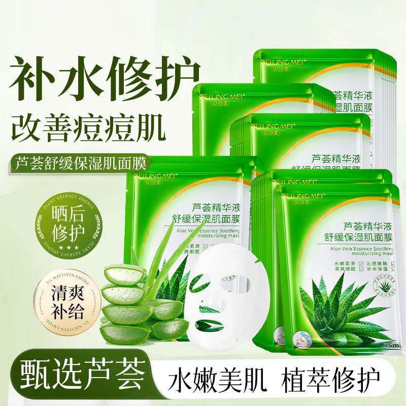 芦荟精华舒缓面膜补水保湿收缩毛孔学生男女晒后修护面膜