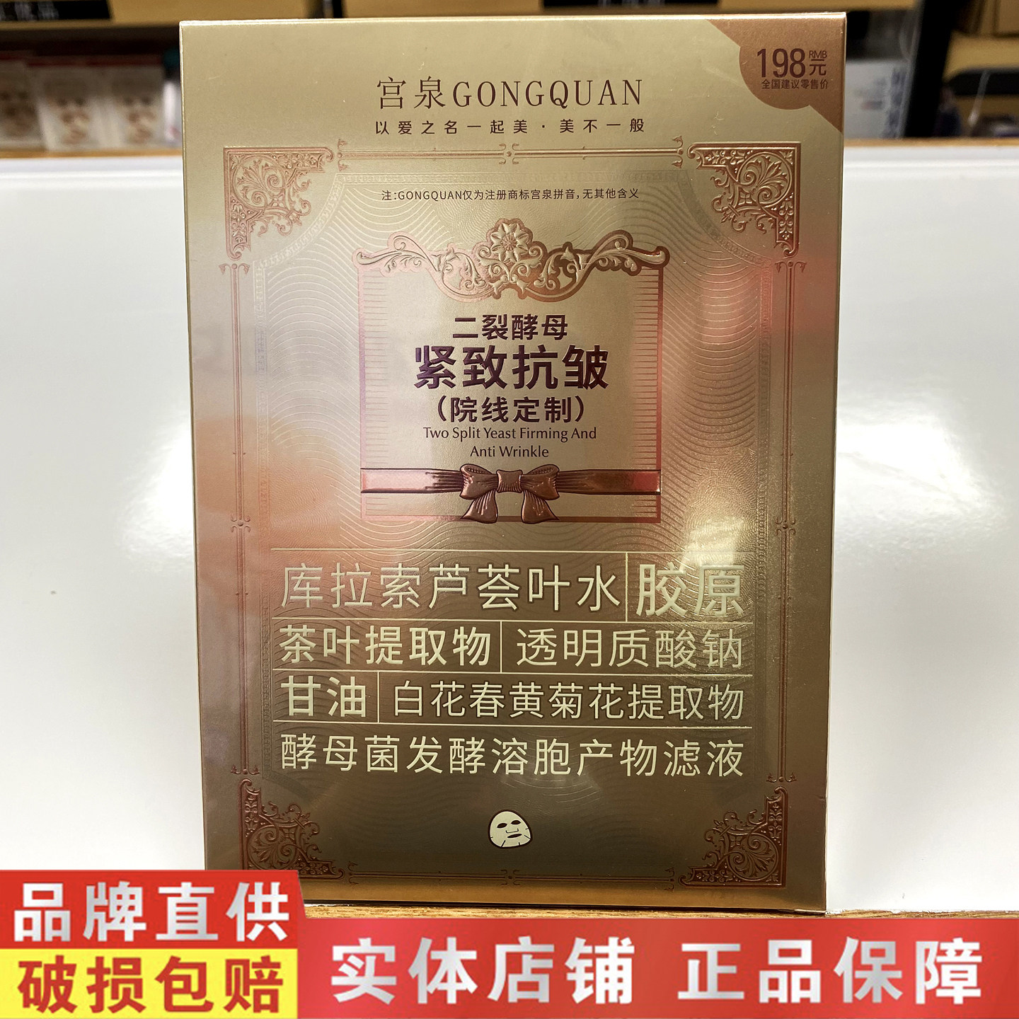 宫泉二裂酵母紧致抗皱面膜透明质酸钠滋润保湿补水嫩柔滑改善干燥