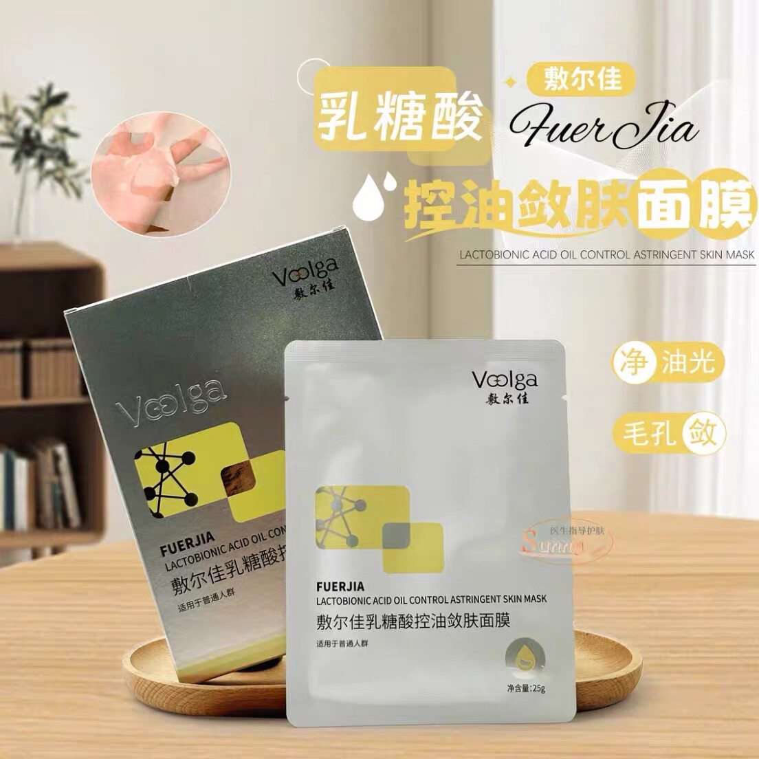 敷尔佳乳糖酸控油净肤面膜修护痘肌平衡水油5片可查防伪