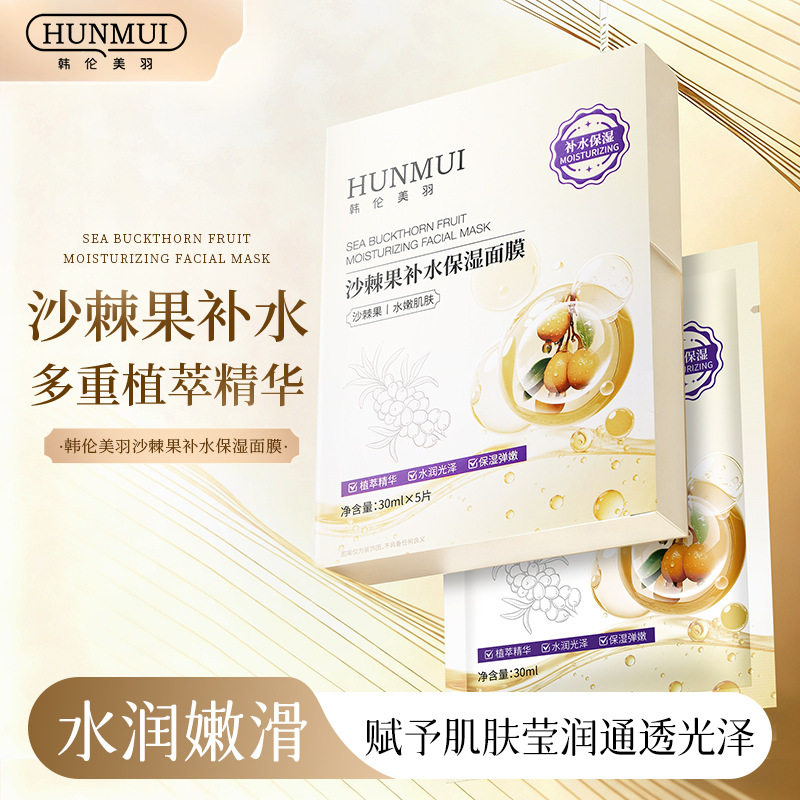 韩伦美羽沙棘果补水保湿面膜改善干燥清爽水润嫩肤提亮贴片面膜