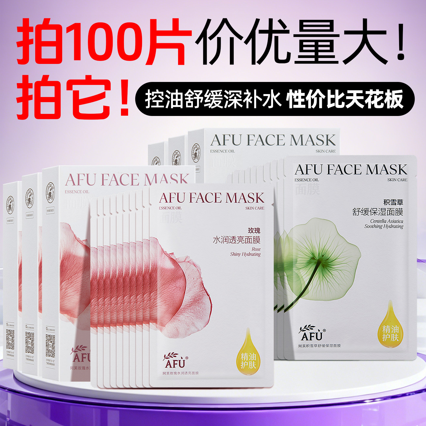阿芙补水面膜提亮舒缓肌肤控油祛痘脸部保湿100片官方正品