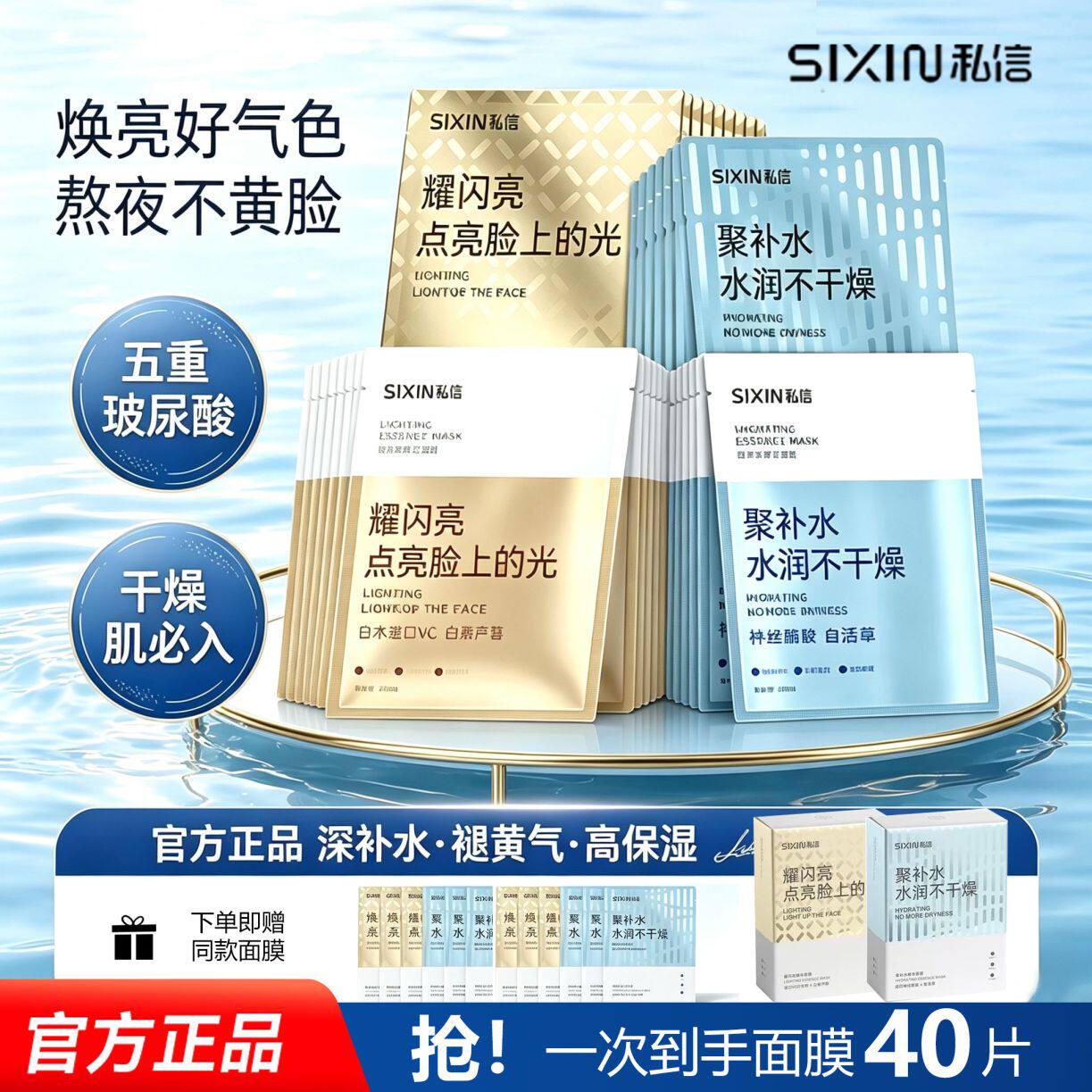 八杯水面膜补水保湿提亮肤色收缩毛孔去黄气暗沉男女