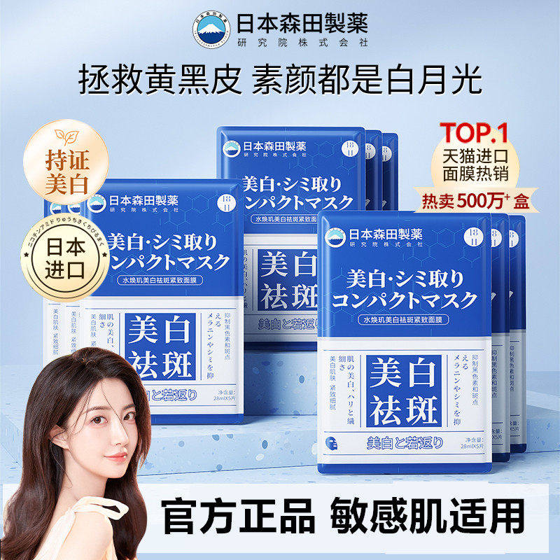 日本森田美白祛斑面膜烟酰胺补水保湿祛斑去黄气暗沉专用官方正品